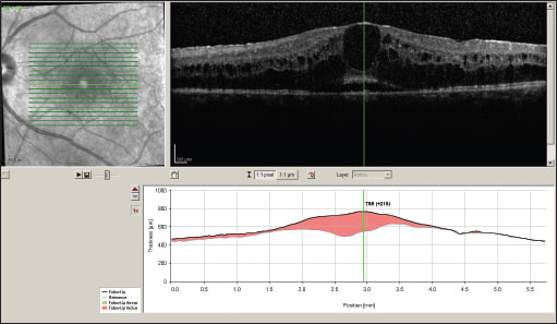 Intravitreal triamcinolone also has been used for the treatment of uveitis and resulting CME.15 Characterized by a transient effect as well, this route carries with it the possible complications of vitreous hemorrhage, endophthalmitis and retinal detachment.16