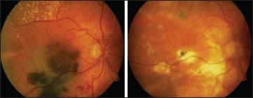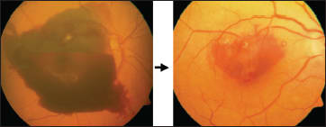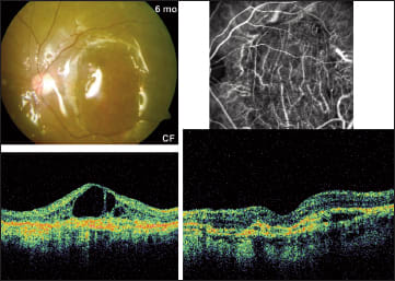Figure 8. In this patient, subretinal drainage after rTPA injection resulted in postop VA of 20/200 from hand motions.