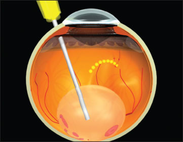 Figure 6. Retinal surgeons can use 23-gauge vitrectomy for pneumatic displacement with rTPA.