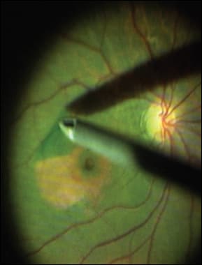 Figure 1. ILM peeling after staining with brilliant blue G.