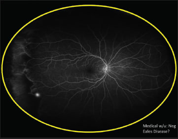 Figure 2. Ultra-widefield FA revealed neovascularization related to peripheral nonperfusion.