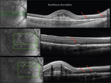 Figure 11. OCT enabled a diagnosis of multifocal choroiditis with inflammatory CNV.