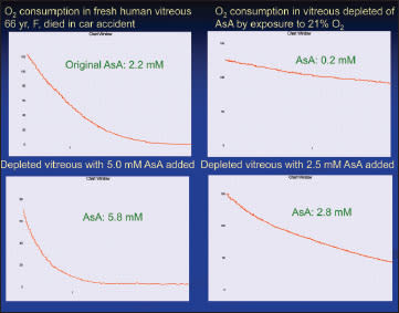 The answer is yes. Subsequent assays of ascorbate concentrations in the vitreous gel or fluid indicated that a gel vitreous has a higher concentration of ascorbate than liquid vitreous, and the rate of oxygen consumption varies accordingly. A gel vitreous with a high concentration of ascorbate will consume oxygen more rapidly than a liquid vitreous with a low concentration of ascorbate (Figure 3).