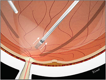 Figure 2. If a PVD is not present, one is made using the suction-only mode of the vitreous cutter.