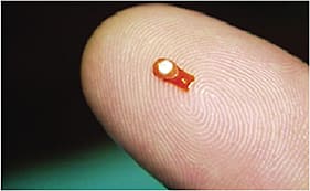 Figure 3. Retisert measures 3 mm x 2 mm x 5 mm with suture tab.