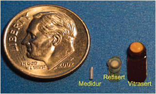 Ophthalmologists use several different FDA-approved intravitreal implants designed for sustained release of their pharmaceutical load. These include: Retisert (fluocinolone acetonide, Bausch + Lomb, Bridgewater, NJ),1 Vitrasert (ganciclovir, Bausch + Lomb),2 and Ozurdex (dexamethasone, Allergan, Irvine, CA).3 These implants have different indications, different sizes, different implantation techniques, and different reimbursement. Many more sustained release drug implants for the eye are in development.4