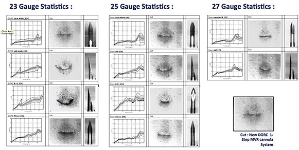 Test results show DORC’s one-step cannula system creates the lowest insertion force in comparison to other tested cannula systems, creating a straight-cut incision for optimal wound construction and self-sealing. Source: DORC International
