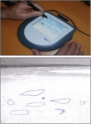 Figure 1. Scanning vitreous opacities: top) digital pad; and bottom) paper.