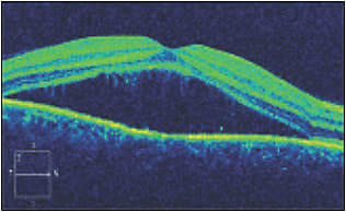 Figure. Spectral-domain OCT image of a patient with CSC, showing neurosensory retinal detachment.