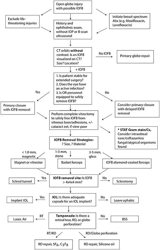 Figure 2. Algorithm for management of IOFBs after open globe injury.
