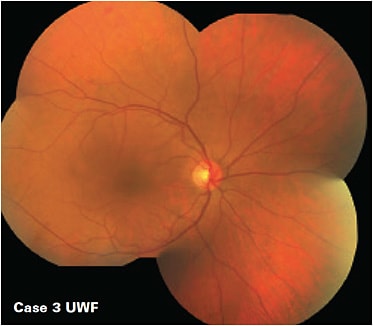 UWF imaging allows for a larger field of view, so we can see more of the retina and detect peripheral changes. This is illustrated by case 3, a patient who had diabetic retinopathy lesions in the periphery. Not only does this technology facilitate early detection, but it also gives us a platform for educating patients on the importance of follow-up care.