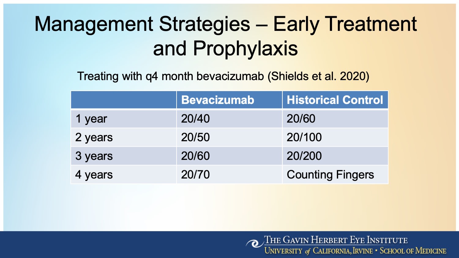 “The macular edema can be pretty resistant to treatment,” Dr. Mishra noted, adding that half of patients had vision of 20/200 or worse at 3 years in early studies. Current treatment strategies largely mirror those for diabetic retinopathy, including anti-VEGF injections and panretinal photocoagulation, but researchers are now also focusing on preventing retinopathy altogether, Dr. Mishra explained.
