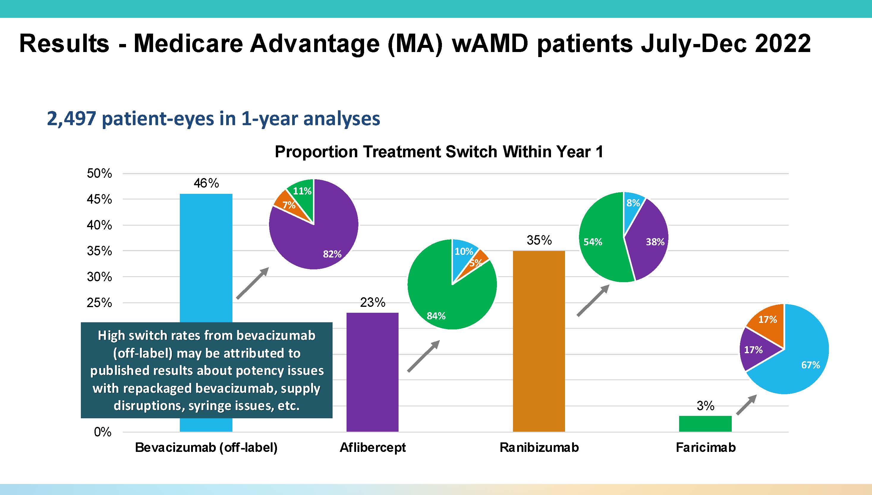 Figure 3. High switch rates from bevacizumab, seen in the study of Medicare Advantage patients, may be due to concern about supply problems or issues with compounding.